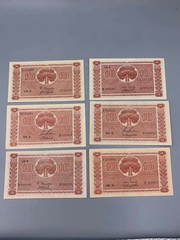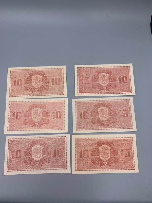 Seteli, Suomi, 10 markkaa 1945, 6kpl.