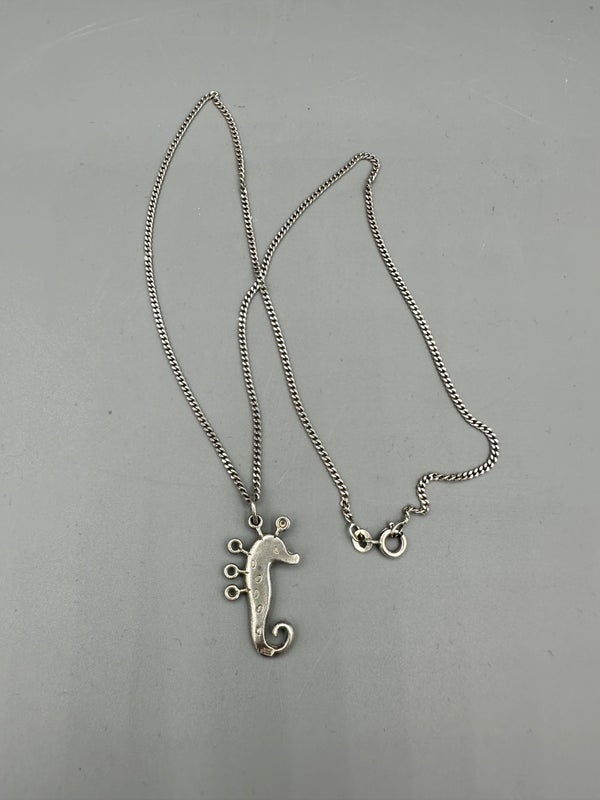Merihevonen, kaulaketju ja riipus, hopeaa.